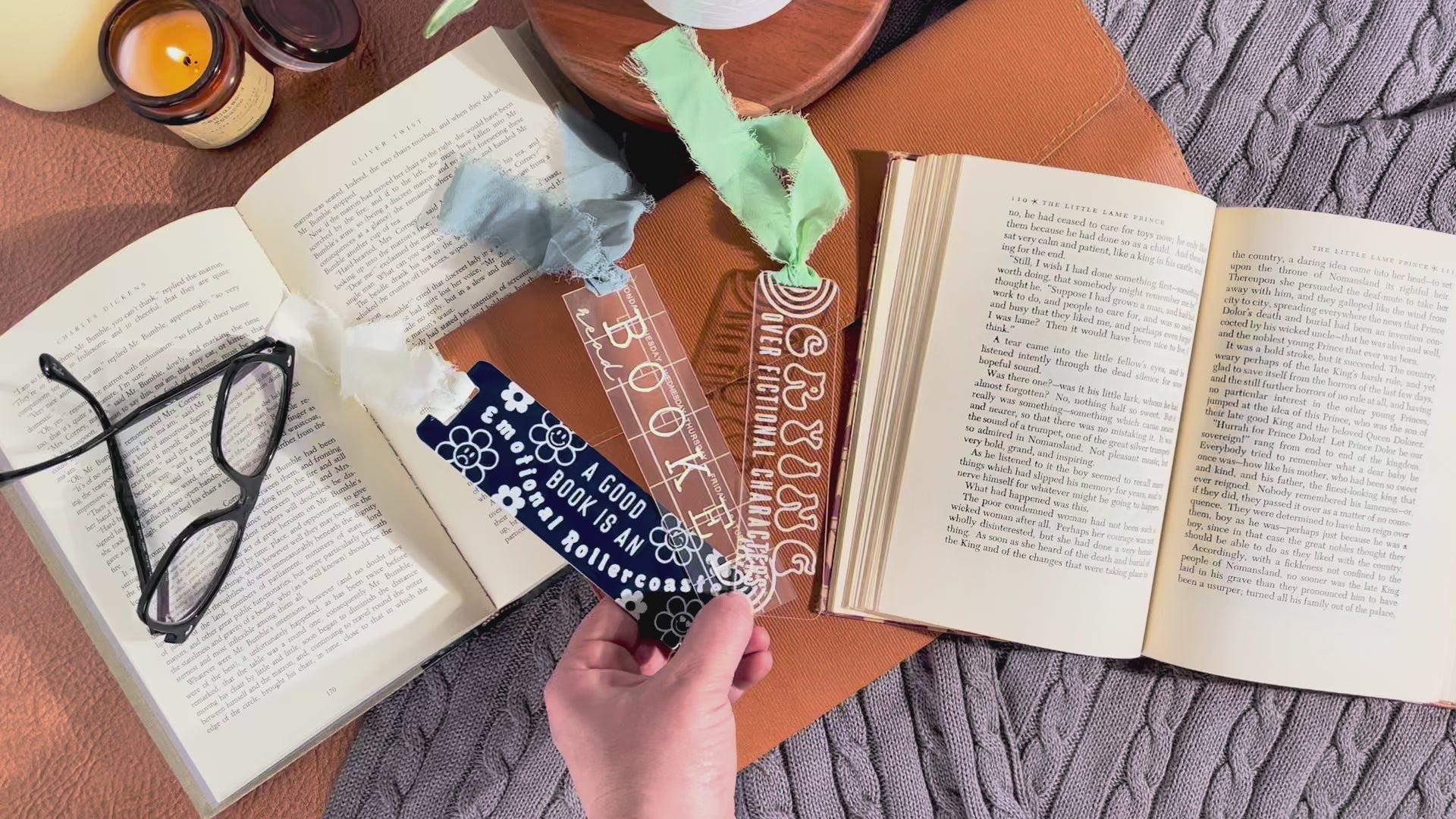 Our acrylic bookmarks are designed and crafted in house. Nothing is better then unwinding & cozying up with a good book but for when reading cover to cover in one sitting isn't possible these bookmarks come in handy. They make perfect gifts for any avid reader in your life or as a little treat for yourself.
