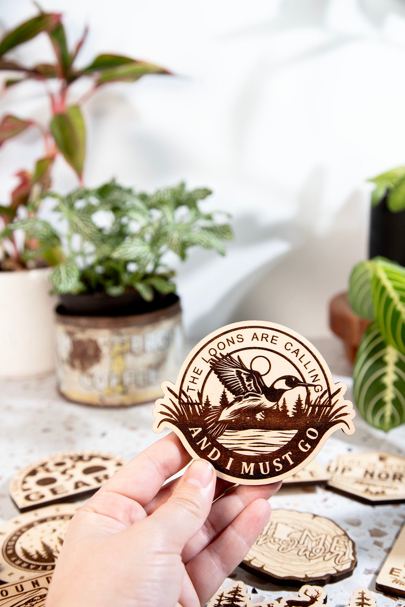 The Loons Are Calling & I Must Go Engraved Wood Magnet