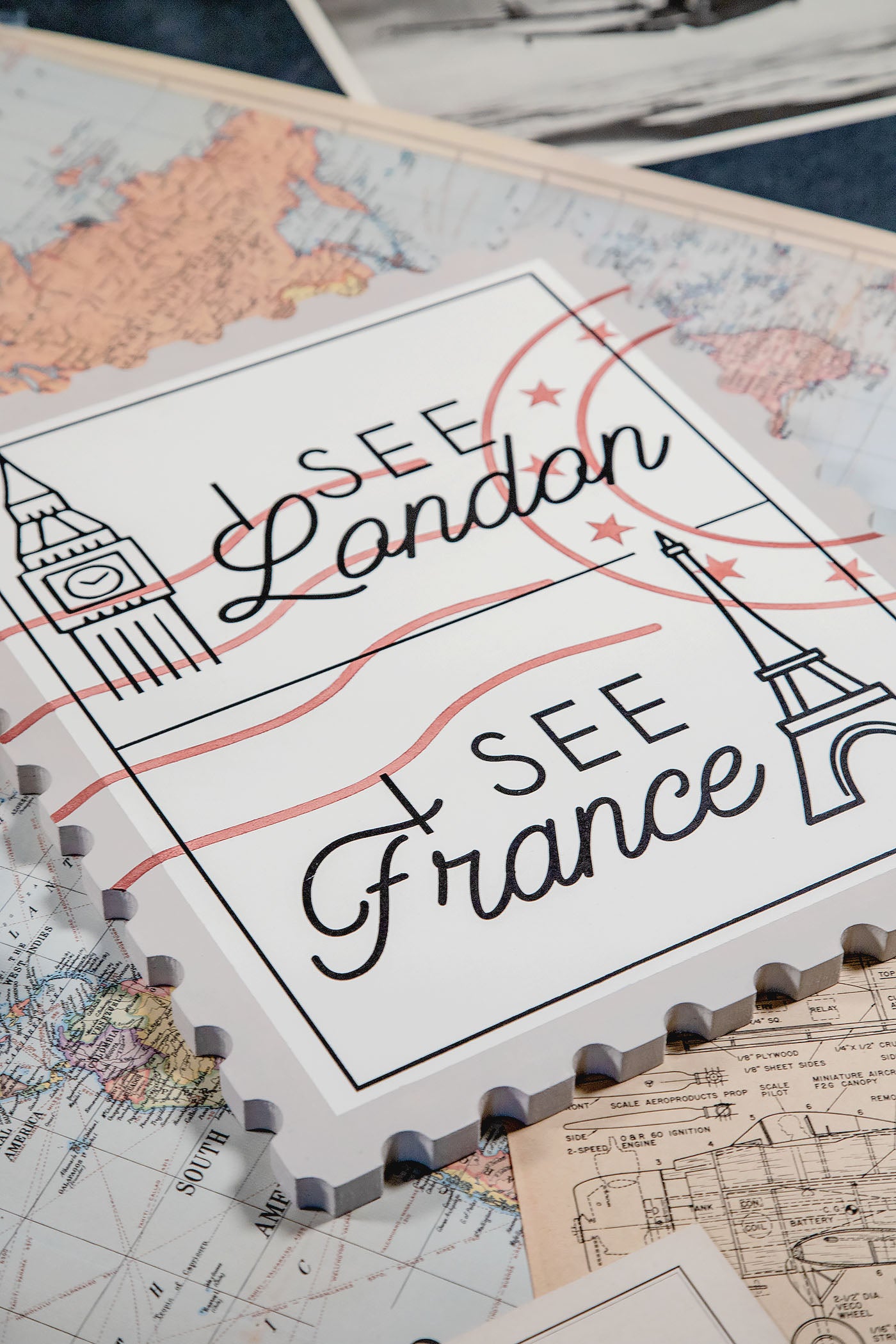 I See London I See France Bathroom Stamp Wood Sign 14x12