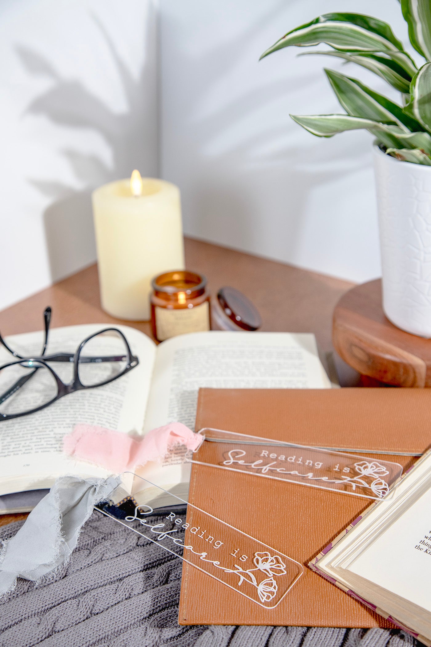 Our acrylic bookmarks are designed and crafted in house. Nothing is better then unwinding & cozying up with a good book but for when reading cover to cover in one sitting isn't possible these bookmarks come in handy. They make perfect gifts for any avid reader in your life or as a little treat for yourself.