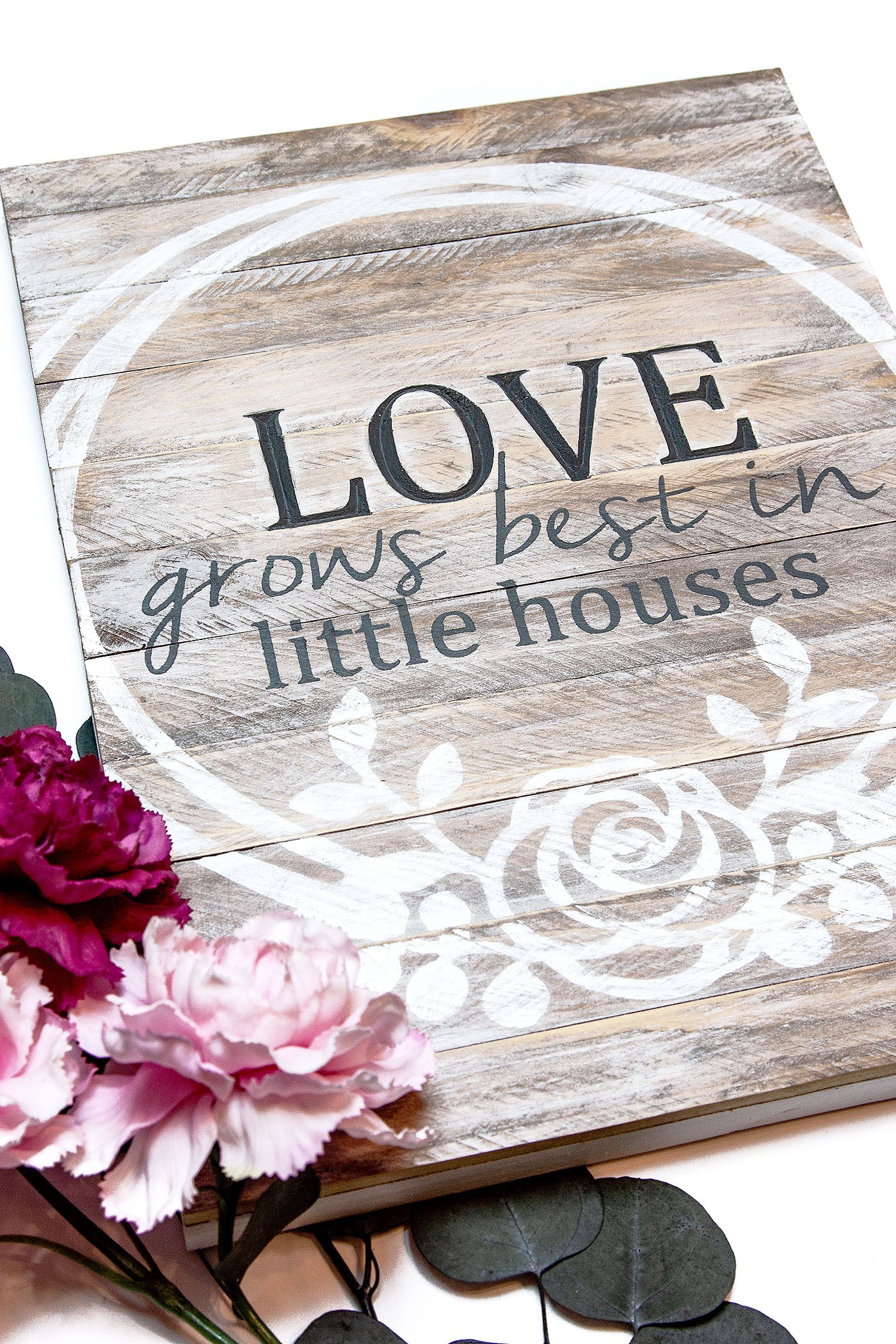 Love Grows Best in Little Houses Engraved Wood Sign