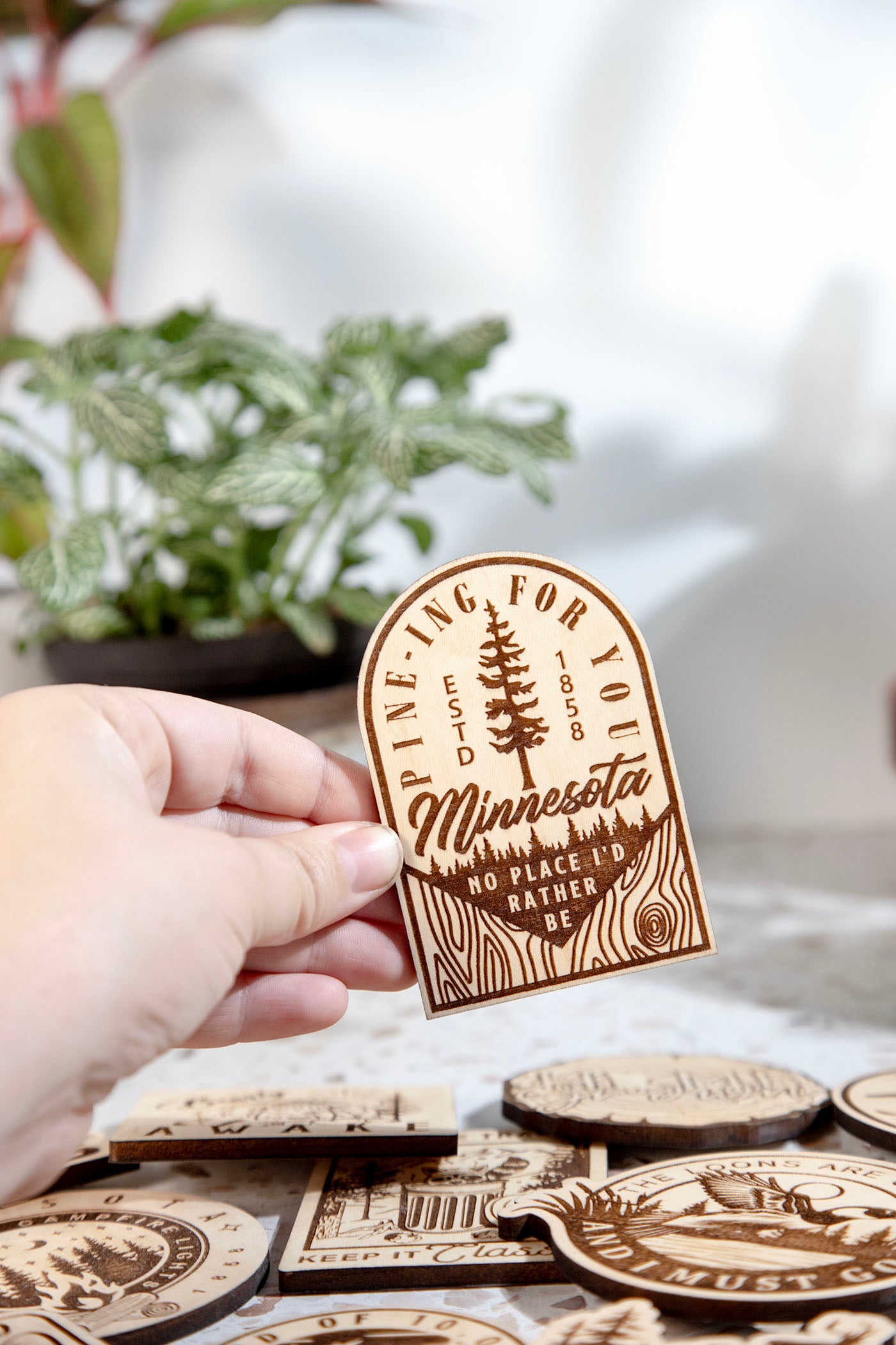Pine-ing For You Minnesota Engraved Wood Magnet