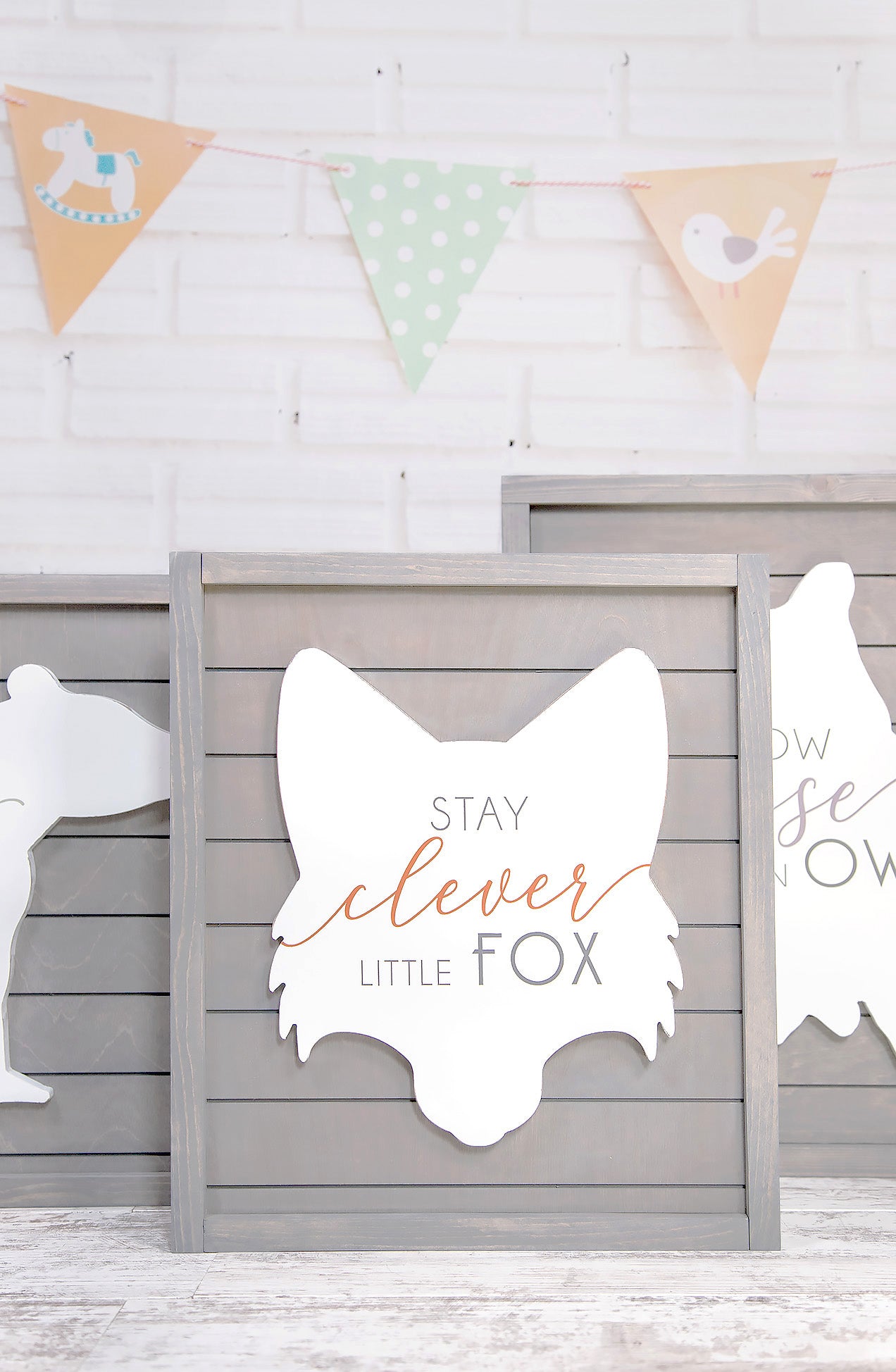 Stay Clever Little Fox Wood Sign - Woodland Nursery - 14x16 Inches