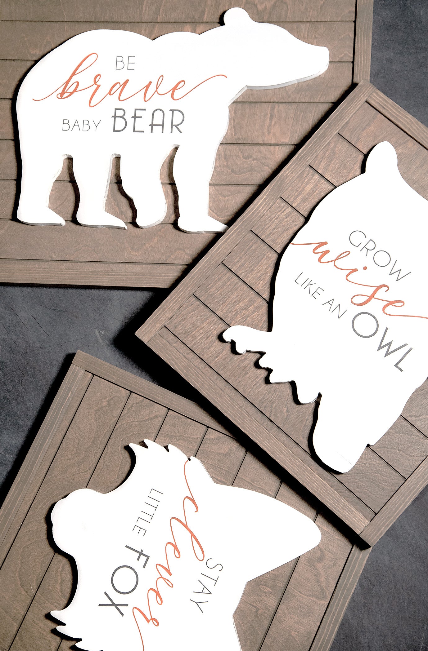 +Frame & Background Stained in Aged Wheat & Weathered Grey(Owl Shows Weathered Grey & Bear is Dark Walnut)