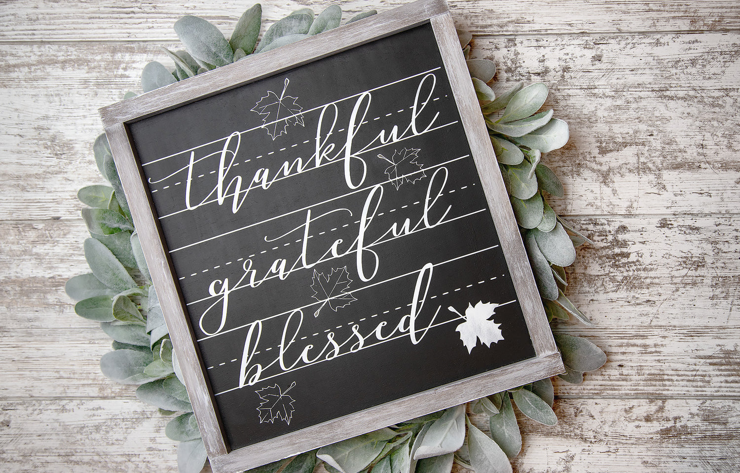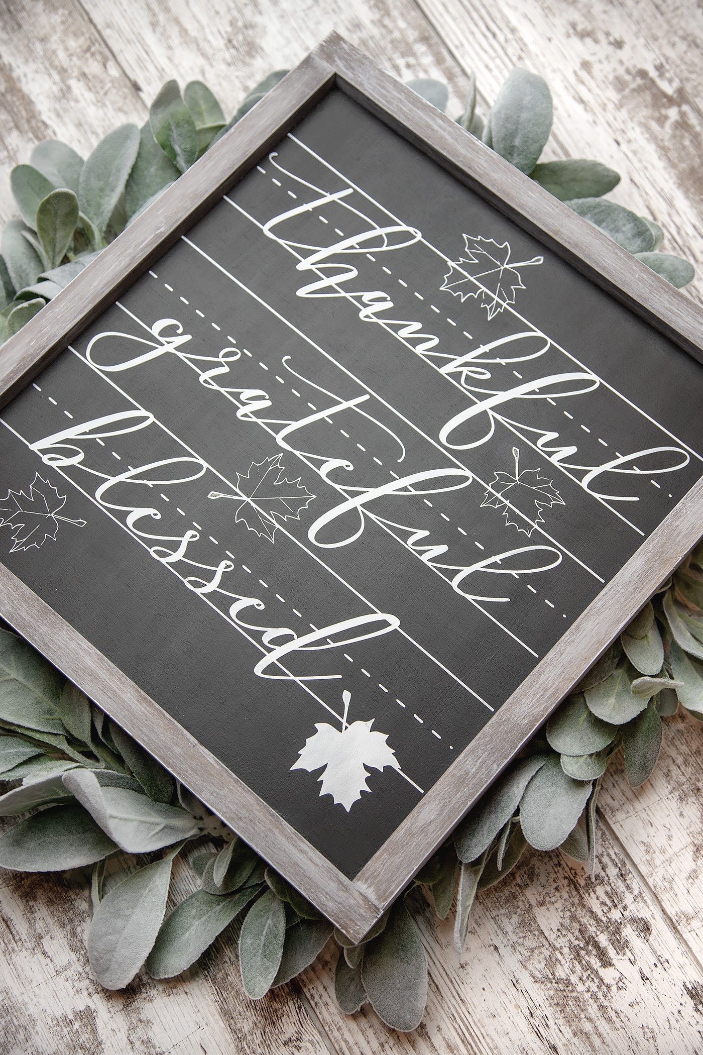 Thankful Grateful Blessed Chalkboard Wood Sign
