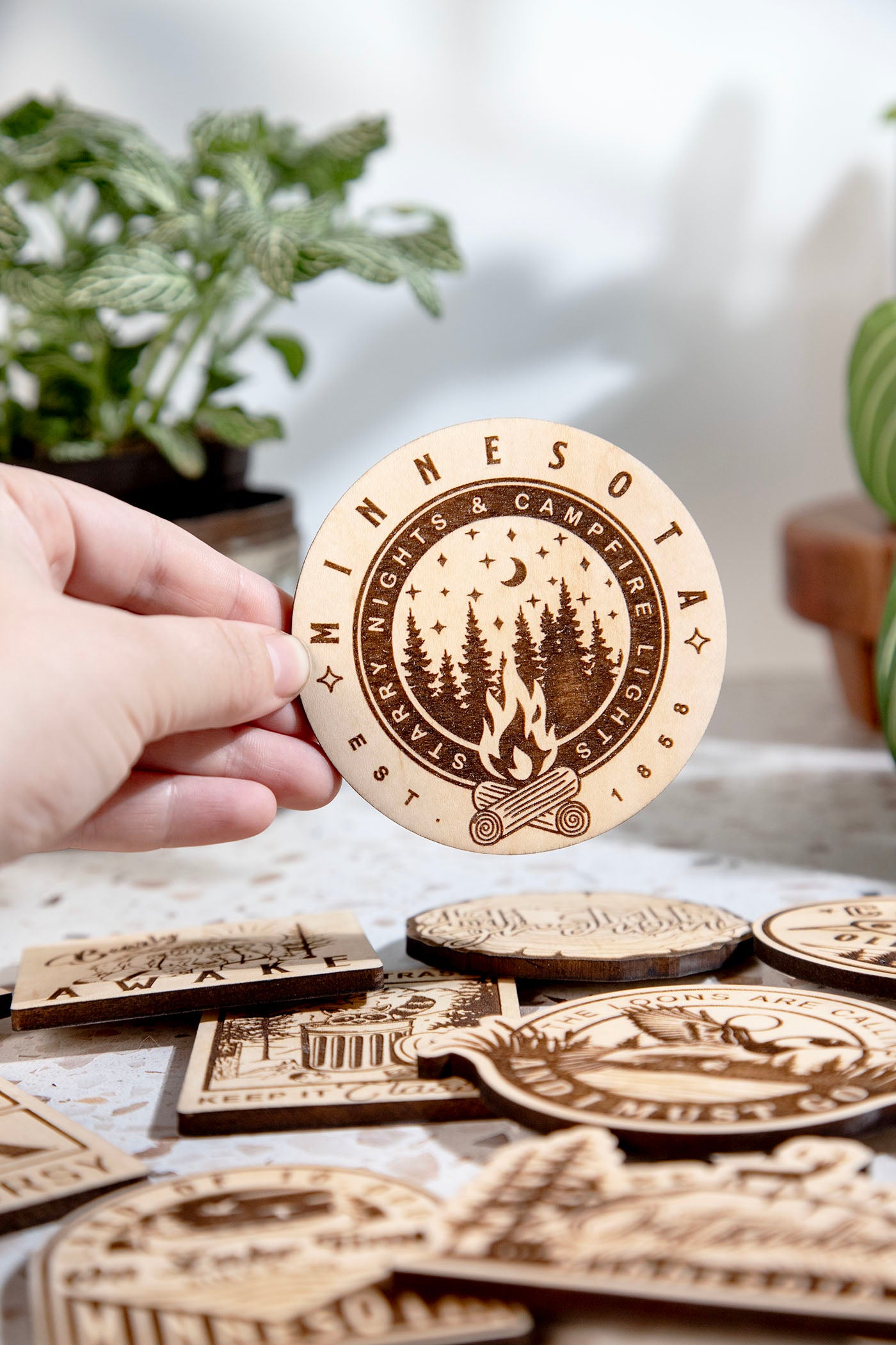 Starry Nights & Campfire Lights Minnesota Engraved Wood Magnet