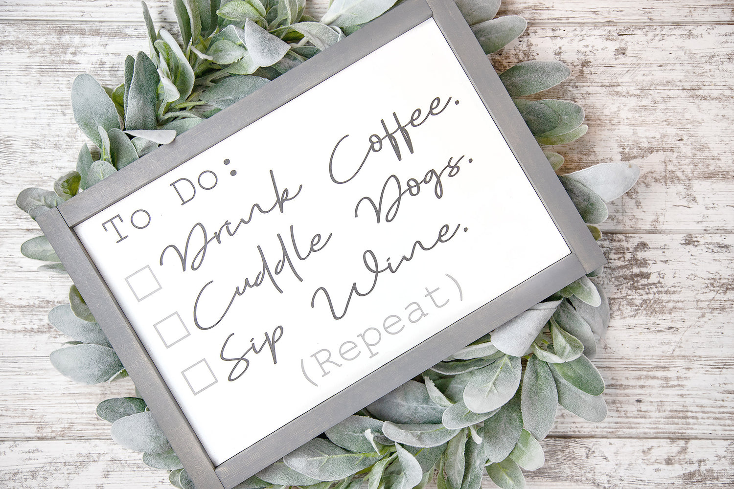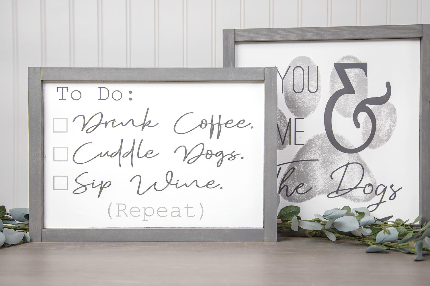 To Do Drink Coffee Cuddle Dogs Sip Wine Wood Sign 14x10