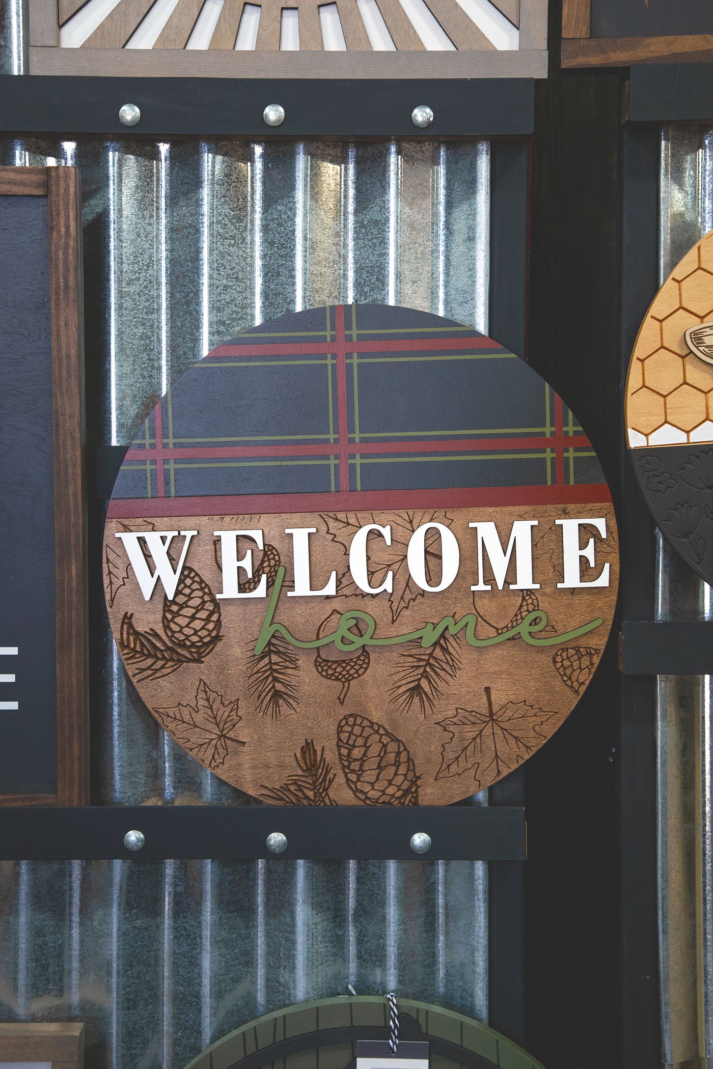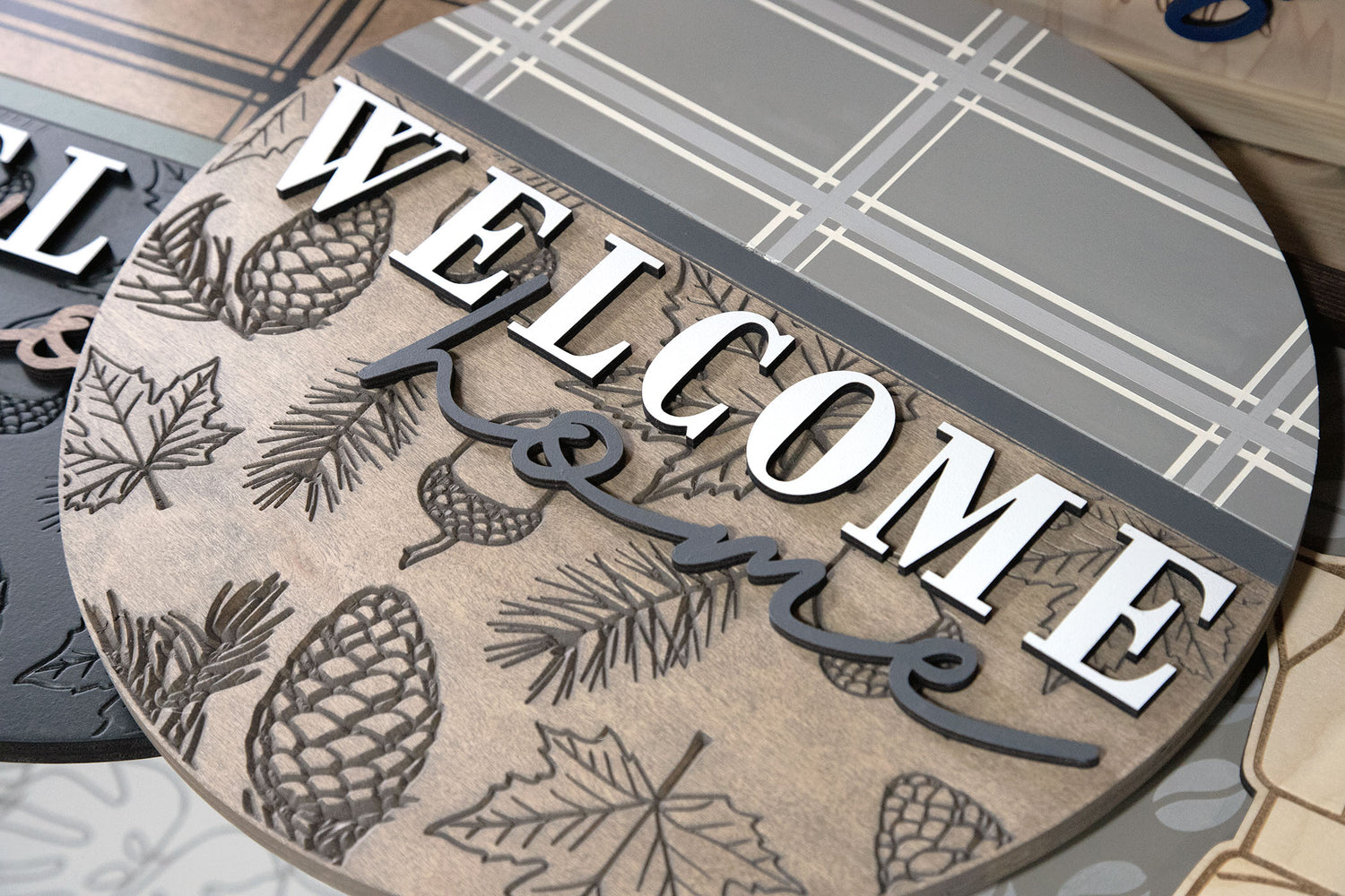 +Welcome and Home are Lasercut