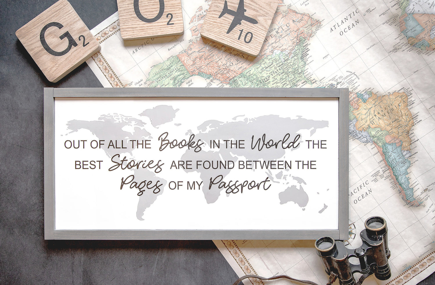 World Map Wood Sign - 24x12 Inches
